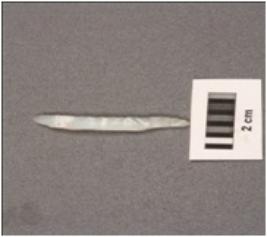 | Description / विवरण | A chalcedony point with a single ridge and use wear on edges. |