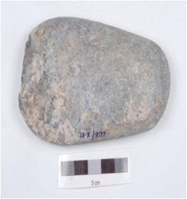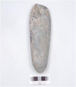 | Description / विवरण | A handaxe made on basalt, smooth surface oval butt, edge is chipped off. |