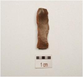 | Description / विवरण | Parallel sided blade made on chert, end struck flake, prepared striking platform on proximal end, prominent bulb on ventral surface, used ware marks on cutting edges, blade scars on dorsal surface, trapezoidical in section. |