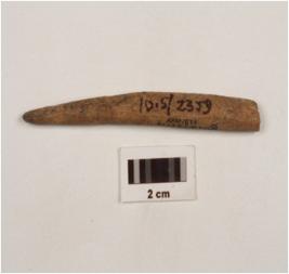 | Description / विवरण | Fragment of bone point tapering towards pointed end, polished surface and broken along other end. |