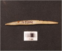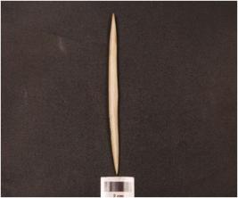 | Description / विवरण | A bone point having polished surface and tapering towards the pointed ends. |