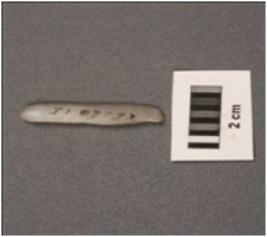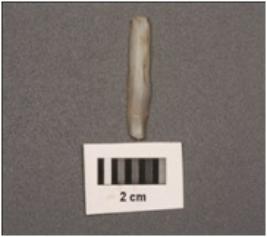 | Description / विवरण | Parallel sided blade, diffused bulb on ventral with striking platform at proximal end, distal end broken and use wear marks on working edges. |