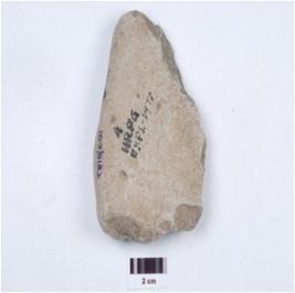 | Description / विवरण | A handaxe made on basalt, edges are broken, smooth surface, butt is missing. |