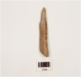 | Description / विवरण | Fragment of bone point tapering towards end with broken tip, grains on the surface and other end is broken. |
