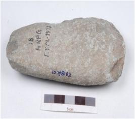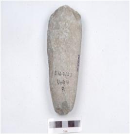 | Description / विवरण | A handaxe made on basalt, butt is missing, rough surface, broken edges. |