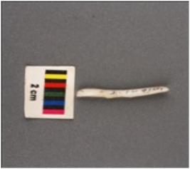 | Description / विवरण | Parallel sided microlithic blade with sharp cutting edges, mid-ridge on dorsal and diffused bulb on ventral. |