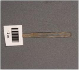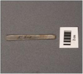 | Description / विवरण | Parallel sided blade, use wear marks on both cutting edges, diffused bulb with striking platform on proximal end and distal end is broken. |