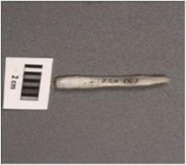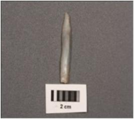 | Description / विवरण | Parallel sided blade, use wear marks on both the cutting edges, proximal end is broken, one ridge on dorsal and smooth ventral surface. |