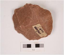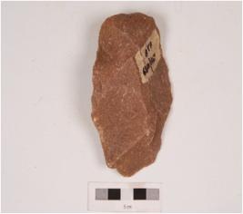 | Description / विवरण | A handaxe made on quartzite with flake scars on both sides and irregularly retouched edges. |
