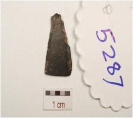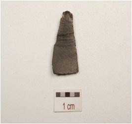 | Description / विवरण | Blade made on chert, end struck flake, bulb absent, ripple marks on ventral surface, broken at one end, used ware marks on cutting edge, blade scars on dorsal surface, trapezoidical in section. |
