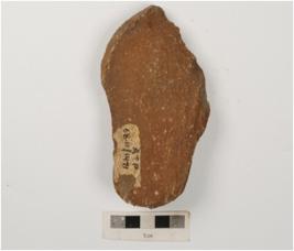 | Description / विवरण | A scraper made on a end struck flake, flake scars on dorsal side, diffused bulb on ventral side with working edges. |