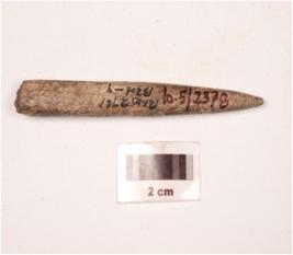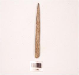 | Description / विवरण | A bone point with rectangular cross section, tapering towards one end, polished and partly porous surface and other end broken. |