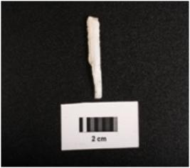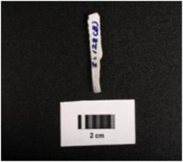 | Description / विवरण | Parallel sided backed blade with two ridges on dorsal side, diffused bulb on ventral side, trapezoidal in section, broken at distal end and from one cutting edge. Use wear marks on cutting edges. |
