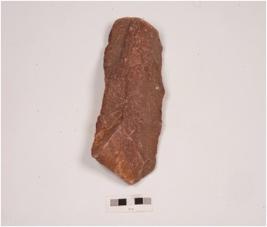 | Description / विवरण | A end struck scraper on end struck flake prominent bulb, flake scars and partly retouched on both sides. |