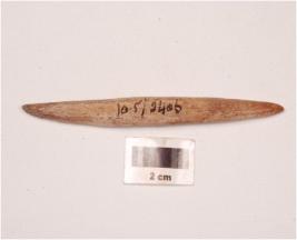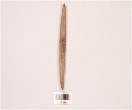 | Description / विवरण | A bone knitter pointed both ends and polished surface. |