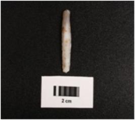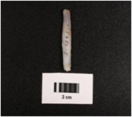 | Description / विवरण | Paralled sided chalcedony blade, mid ridge on dorsal and flat ventral with use wear on edges. |