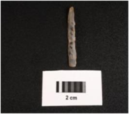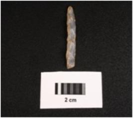 | Description / विवरण | Parallel sided microlithic blade with wavy mid ridge on dorsal, use wear marks on cutting edges and triangular in section. |