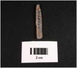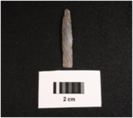 | Description / विवरण | Paralled sided chalcedony blade, smooth ventral side use wear on edges and two ridge dorsal. |
