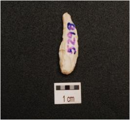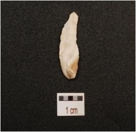 | Description / विवरण | Flake made on chert end struck flake, bulb absent used ware marks on cutting edge, flake scars on dorsal surface, triangular in section. |