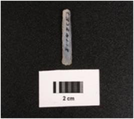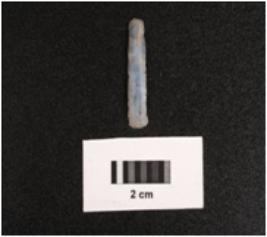 | Description / विवरण | Parallel sided microlithic blade with two ridges on dorsal diffused bulb on ventral, broken at distal end and use wear marks on cutting edges. |