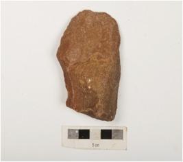 | Description / विवरण | A handaxe made on pebble with alternate flaking on both sides, stone hammer techinque is empolyed. |