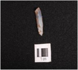 | Description / विवरण | A backed point with a mid ridge on dorsal triangular in section, diffused bulb on ventral pointed at distal end and use wear marks on cutting edges. |