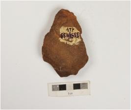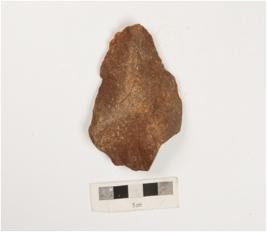| Description / विवरण | Unifacial miniature handaxe, made on quartzite with cortex on dorsal side, bulb on ventral broken at one end with a sharp working edge made by applying alternate flaking technique. |