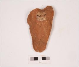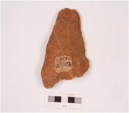 | Description / विवरण | An unfinished miniature handaxe with alternate flaking on the surface employed by soft hammer technique. |