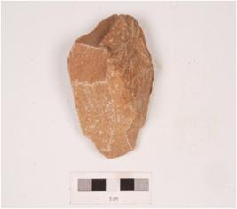 | Description / विवरण | A bifacial handaxe made on quartzite with flake scars on both sides and irregular retouches on cutting edge. |