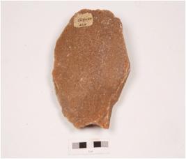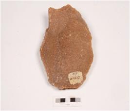 | Description / विवरण | A side scraper made on quartzite with prepared platform, on the ventral with diffused bulb, flake scars on dorsal and irregular retouched along the cutting edges. |