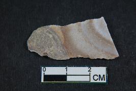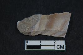 | Description / विवरण | Fragment of blade with positive bulb of percussion on its ventral side , two dorsal ridges and smooth surface. |