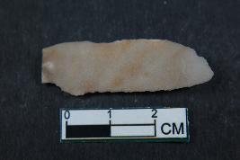 | Description / विवरण | Fragment of blade with positive bulb of percussion on its ventral side , one dorsal ridge and smooth surface. |
