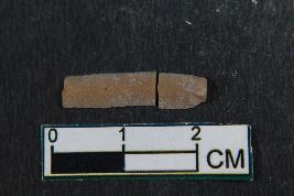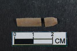 | Description / विवरण | Fragment of a blade with one dorsal ridge having smooth surface. Shorter blade has length equivalent to 0.6 cm. |