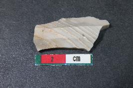 | Description / विवरण | A fragment of blade having two dorsal ridges and smooth surface. |