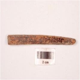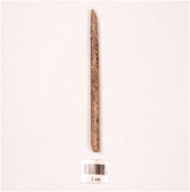 | Description / विवरण | A bone point with circular cross section, tapering towards one end, polished surface and broken from both ends. |