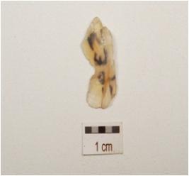 | Description / विवरण | Flake made on side struck flake, flake scars on one side, bulb on ventral side use wear marks on cutting edges. |