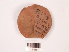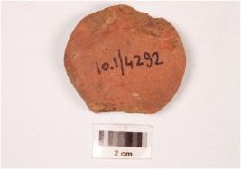 | Description / विवरण | Terracotta disc with smooth surface, round in shape, slightly broken at both sides and dull red in colour. |