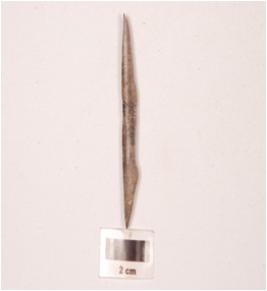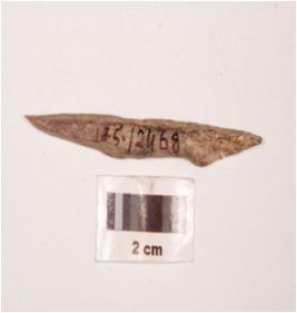 | Description / विवरण | Fragment of a point on charred bone, broken at one end and polished surface. |