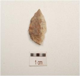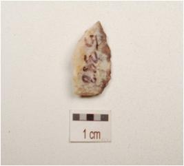 | Description / विवरण | Flake made on end struck flake, prepared platform on proximal end, flake scars on dorcell side and bulb on ventral side, triangular in section. |