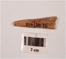 | Description / विवरण | Fragment of a bone point with one pointed end, broken broad other end, circular in section and polished surface. |