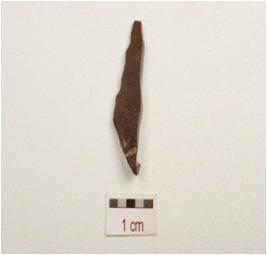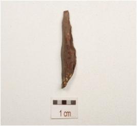 | Description / विवरण | Blade made on chert single ridge on dorcel side, use wear marks on working edges triangular in section. |