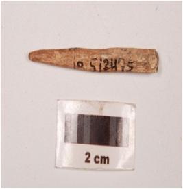 | Description / विवरण | Fragment of a bone point, polished surface, point towards one end, broken another end and circular in section. |