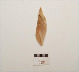 | Description / विवरण | Flake made on end struck flake, blade scars on one side, use wear marks on cutting edges. |