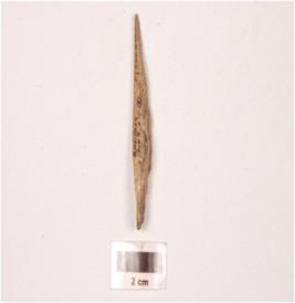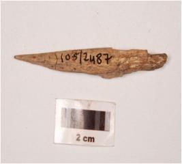 | Description / विवरण | Fragment of a bone arrow head, pointed towards one end polished surface and eroded surface. |