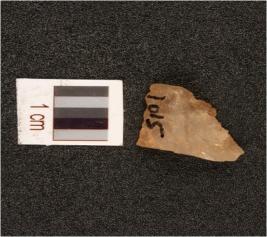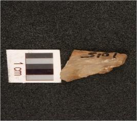| Description / विवरण | A quartz side scraper with use wear marks along cutting edges, a prominent ridge on dorsal surface, triangular in section, cortex on ventral surface and postive bulb. |