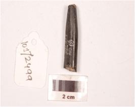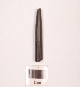 | Description / विवरण | Fragment of a point on charred bone, pointed one end, broad other end, broken both the ends and polished surface. |