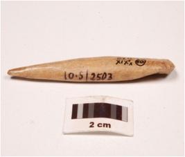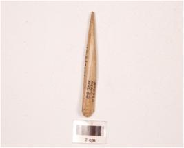 | Description / विवरण | Fragment of a bone point with polished surface, pointed towards one end, broad, flat another end and groove on one side. |