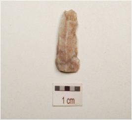 | Description / विवरण | Blade made on chert, prepared platform on posterior side, double ridge on dorcell side and defused bulb on ventral side, trapezoidal in section. |