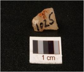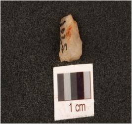 | Description / विवरण | Fragment of core quartz triangular in shape, three blade scars on surface and prepared platform. |