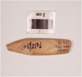 | Description / विवरण | Fragment of a bone point with one broken pointed end, other broad flat end and polished surface. |